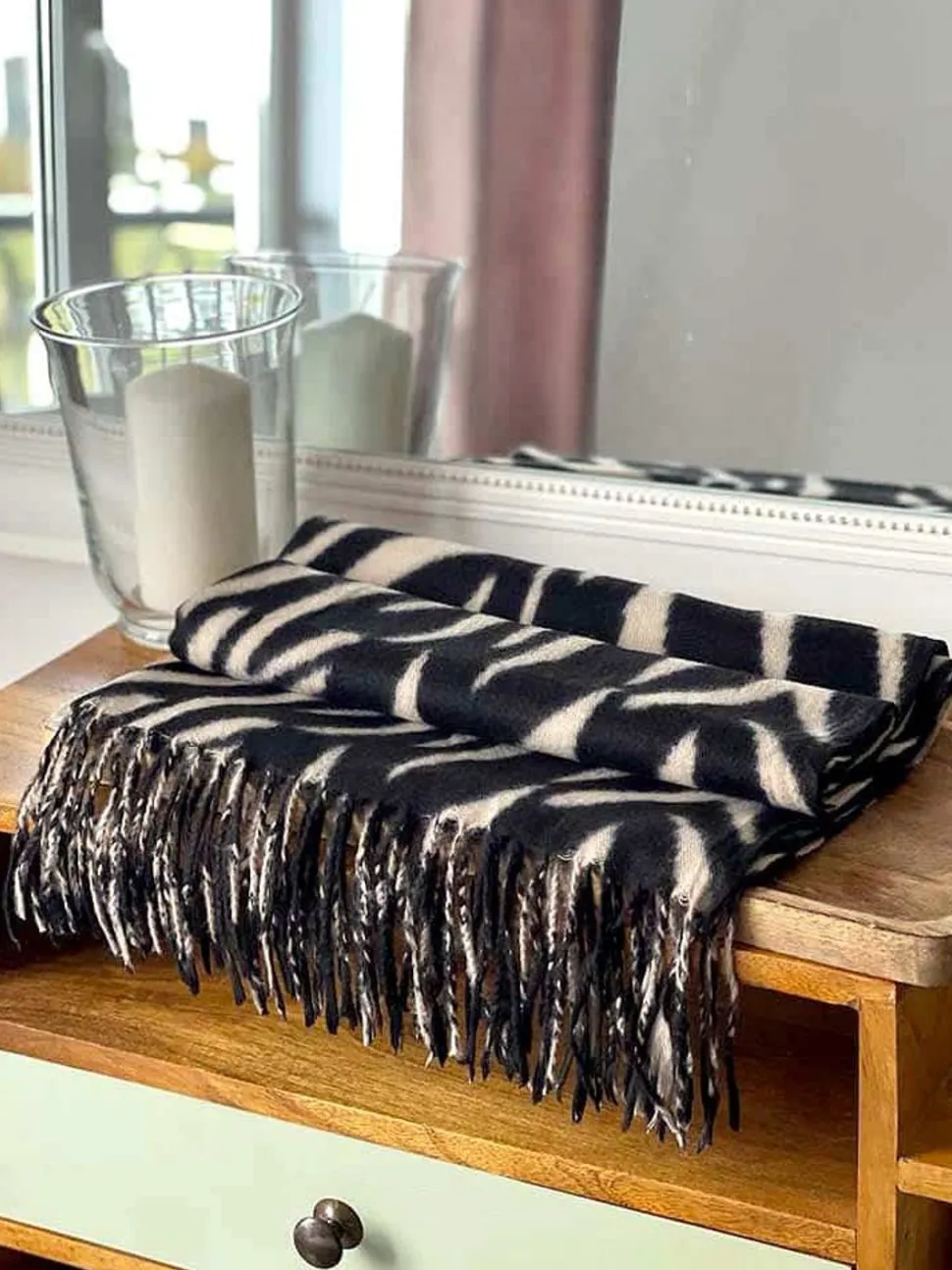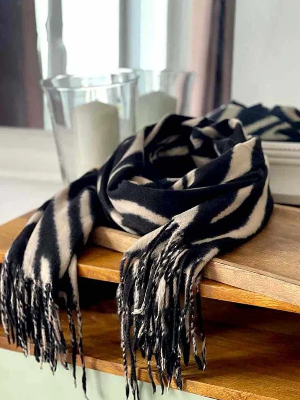 - Écharpe Iriselle : Style Naturel Et Sophistiqué En Beige Et Noir.