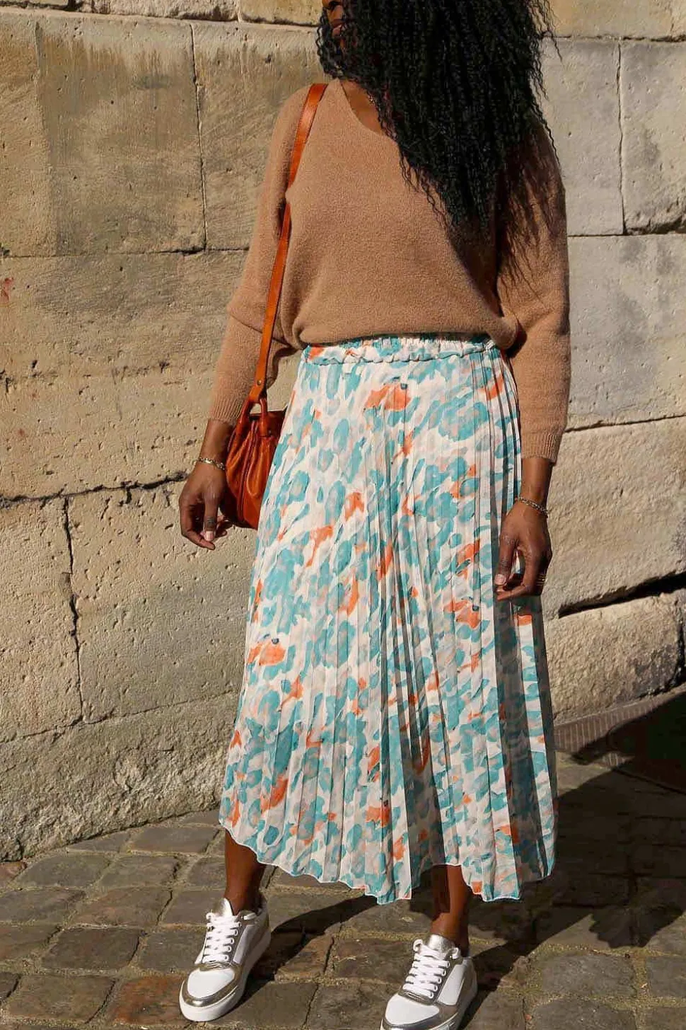 La Jupe Plissée Vert Fadela Est Un Classique Du Dressing Feminin. On Aime La Fluidité De Son Jupon Et Son Imprimé Original. Fadela Se Porte En Journée Avec Votre Paire De Chaussures Préférée. Portée Avec Un Pull Rentré À La Taille Ou Simplement Avec Un T-Shirt : On Adore.