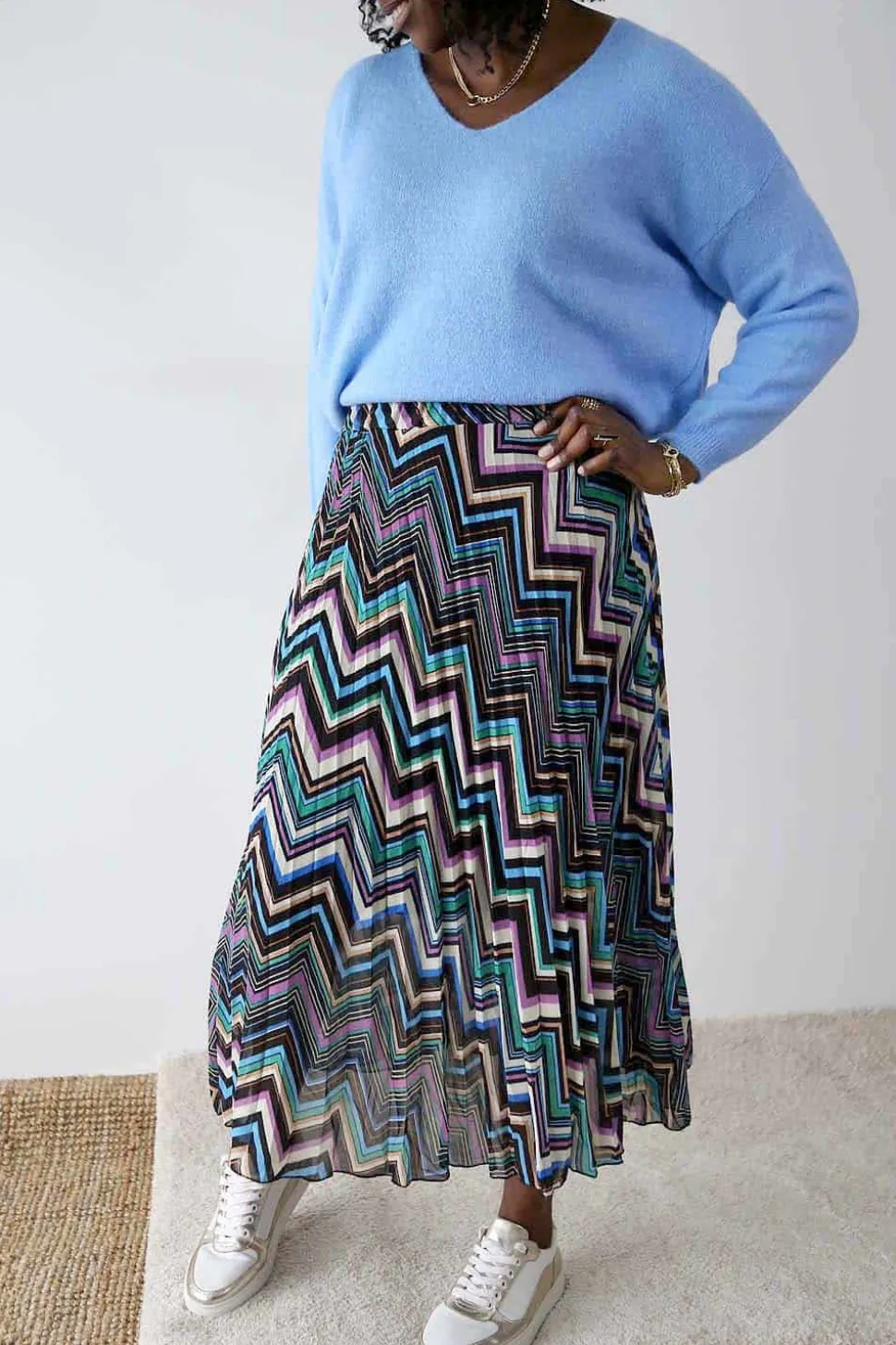 La Jupe Plissée Violet Ziguy Est Pile Dans La Tendance. On Aime La Fluidité De Son Jupon Et Son Imprimé Graphique Ultra Actuel. Ziguy Se Porte En Journée Avec Une Paire De Bottes, De Bottines Ou De Sneakers. Portée Avec Un Pull Rentré À La Taille, On Adore.