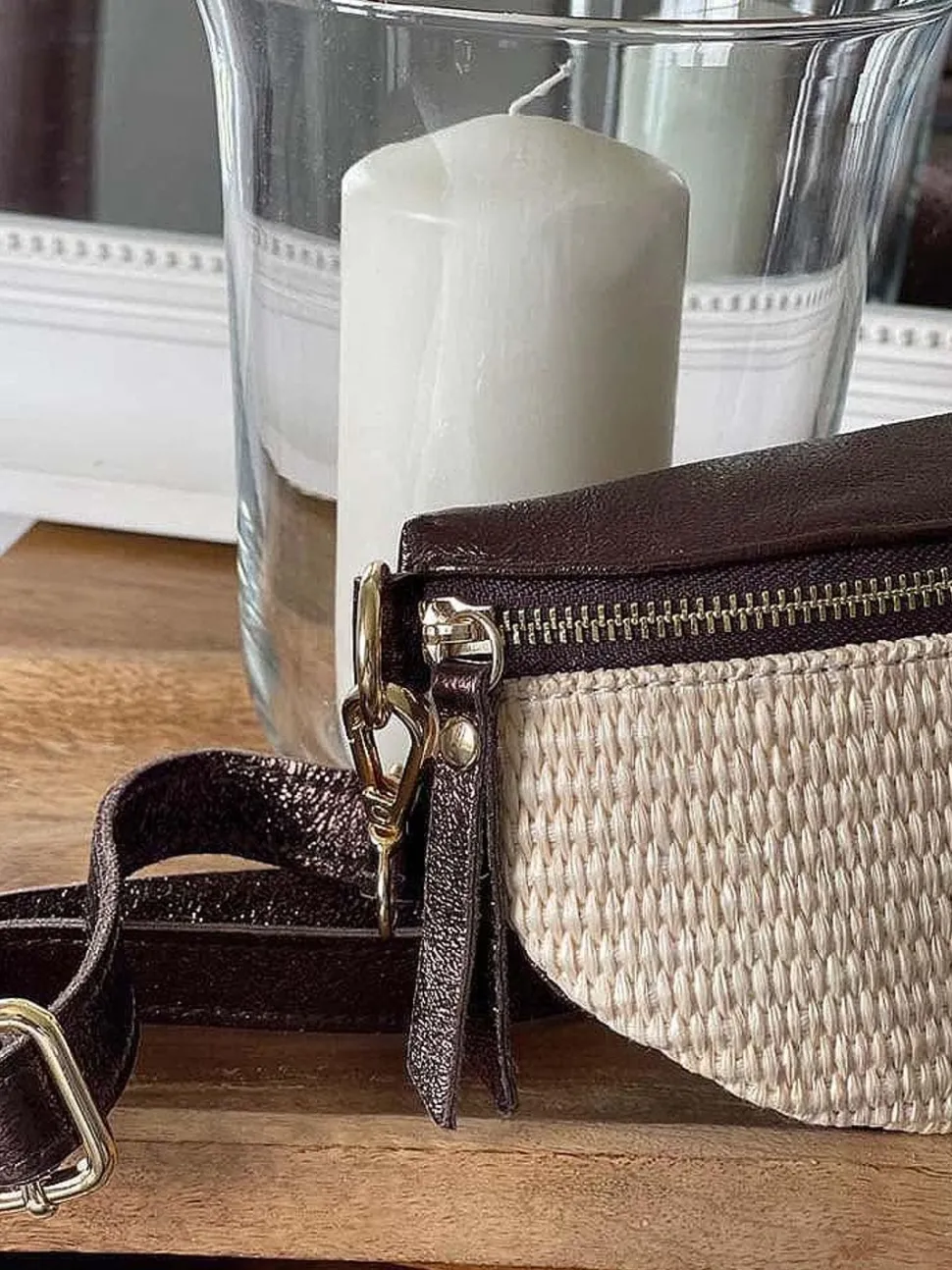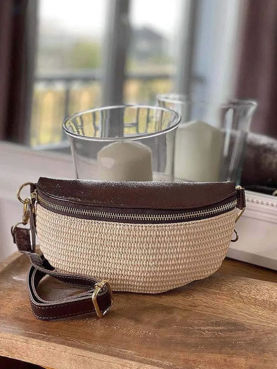 Grâce À Sa Bandoulière Amovible Et Ajustable, Le Sac Banane En Raphia Et Cuir Irisé Marron Choco Ojala Se Porte En Croisé, À L’Épaule Ou À La Taille Pour Une Allure Tendance Et Décontractée. Il Est Aussi Possible De Remplacer Sa Bandoulière D’Origine Par L’Une De Nos Bandoulières Pour Obtenir Un Modèle Unique Composé Selon Vos Envies.