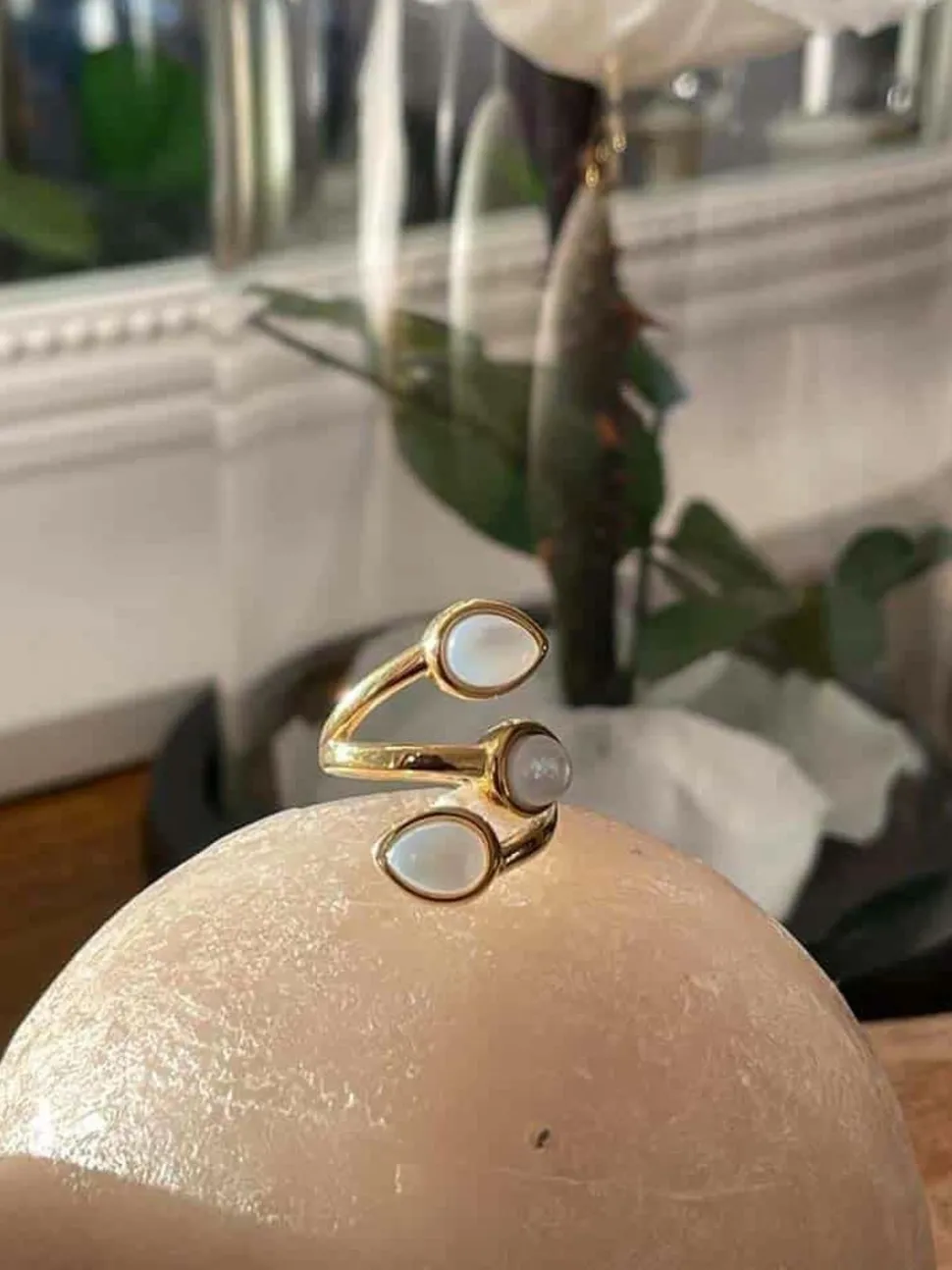La Bague Ajustable Nafy Est En Acier Inoxydable Doré. Elle Est Joliment Surmontée De Pierres De Couleur “Blanchâtre”. On Aime Cette Bague Qui Apporte Une Touche De Chic. C’Est Un Modèle Ajustable Que Vous Pouvez Porter Au Doigt De Votre Choix, Et Ainsi Vous Pouvez Vous L’Offrir, Ou Offrir, Sans Le Souci De La Taille.