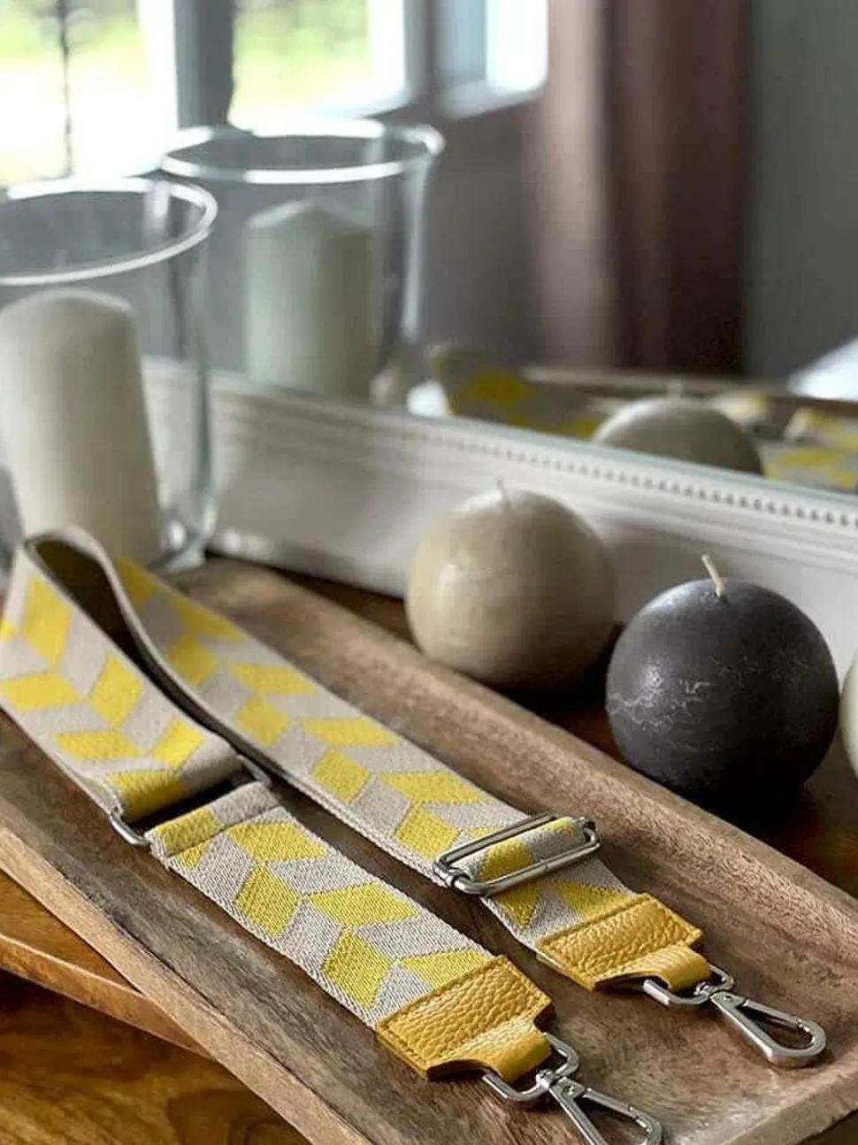 La Bandoulière Sac À Main Jaune Aux Motifs Graphiques, Billie Est Le Parfait Accessoire Pour Changer Le Style De Votre Sac À Main Selon Vos Goûts, Vos Envies, Vos Tenues.