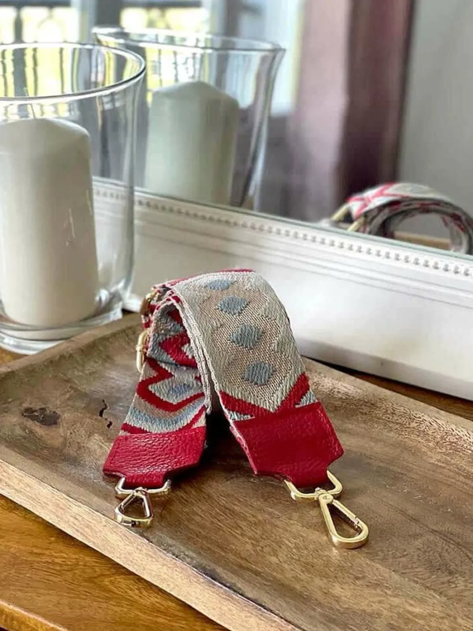 La Bandoulière De Sac À Main Rouge Neeve, Avec Ses Jolis Motifs Aztèques, Est Le Parfait Accessoire Pour Changer Le Style De Votre Sac À Main Selon Vos Goûts, Vos Envies, Vos Tenues. C’Est Une Sangle De Sac À Main Incontournable Et Intemporelle.