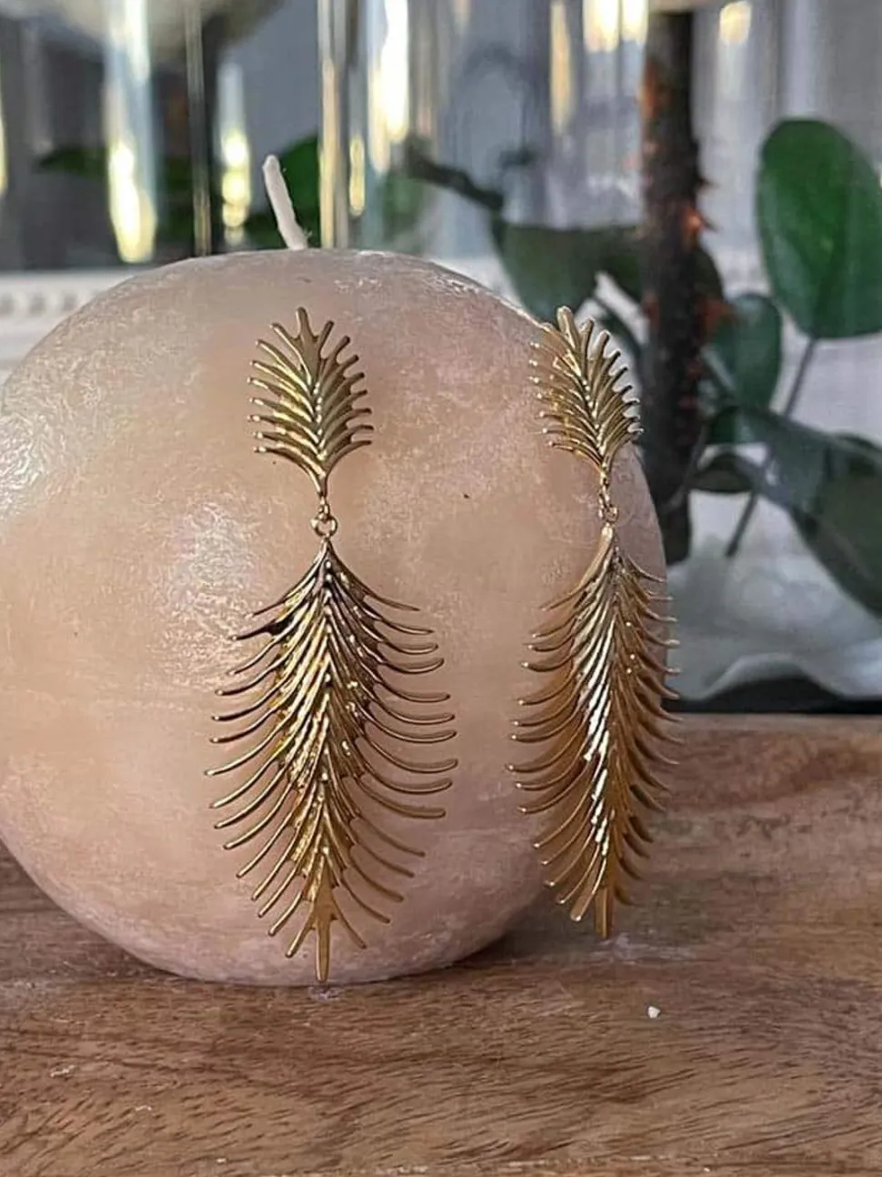 Les Boucles D’Oreille Amy Sont En Acier Inoxydable Doré. On Aime Ce Modèle Qui S’Inspire D’Un Joli Palmier. Minutieusement Travaillées, Elles Mettront En Valeur Votre Port De Tête Avec Un Chic Fou.