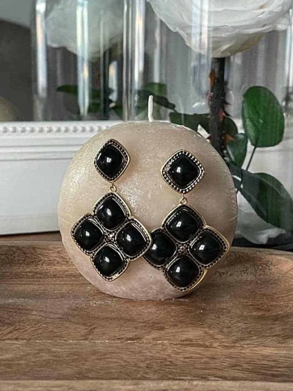 Les Boucles D’Oreille Noir Adele Sont En Acier Inoxydable Doré. On Aime Ce Modèle Minutieusement Travaillé. C’Est Un Très Joli Bijou Qui Fait Dans Le Détail Avec Chic. Adele Est Une Pièce Forte Qui Apportera Du Caractère À Votre Tenue.