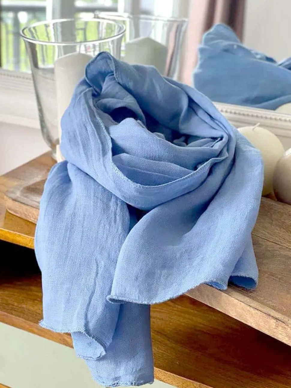 Plongez Dansl’Élégance Intemporelle De Notre Foulard En Lin 100% Bleu Ciel Emery, Tissé En Italie Avec Le Plus Grand Soin. Une Pépite Qui Incarne La Qualité À L’État Pur.