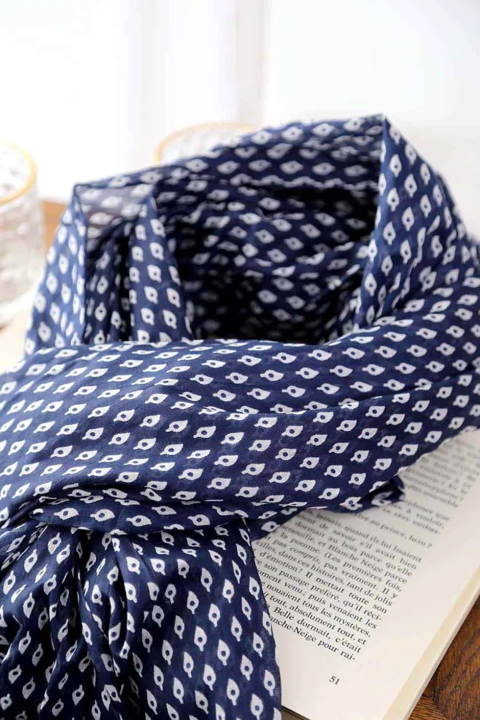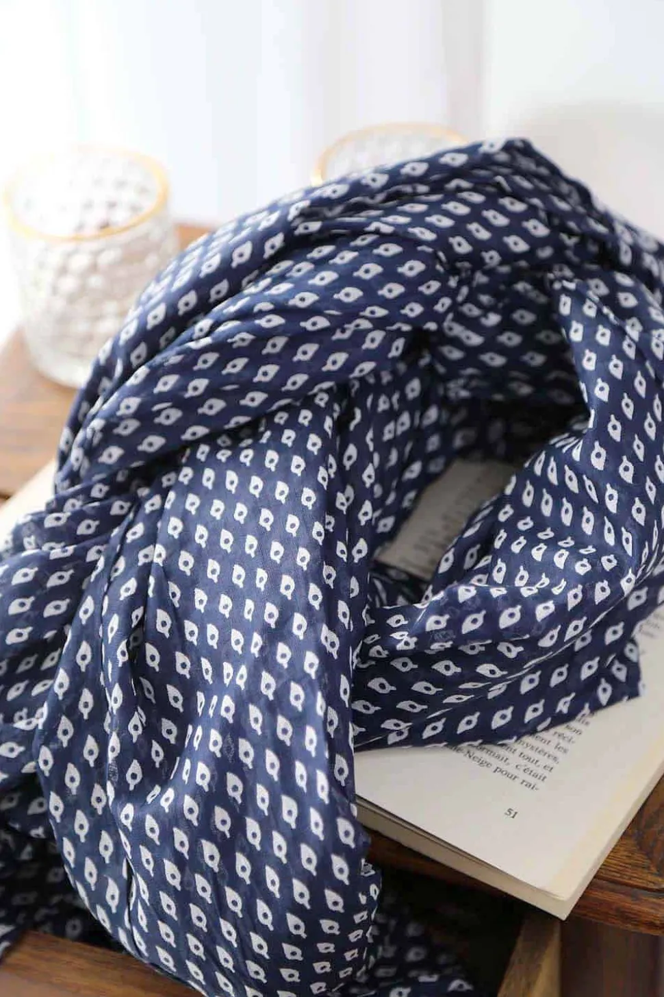 Laissez-Vous Charmer Par L’Élégance Intemporelle Du Foulard Pour Homme, En Coton Bleu Marine, Sublimé Par Des Motifs Blancs Éclatants. Le Contraste Entre Le Bleu Profond Et Le Blanc Pur Crée Un Design Saisissant, Faisant De Ce Foulard Un Choix Judicieux Pour Les Hommes Modernes.