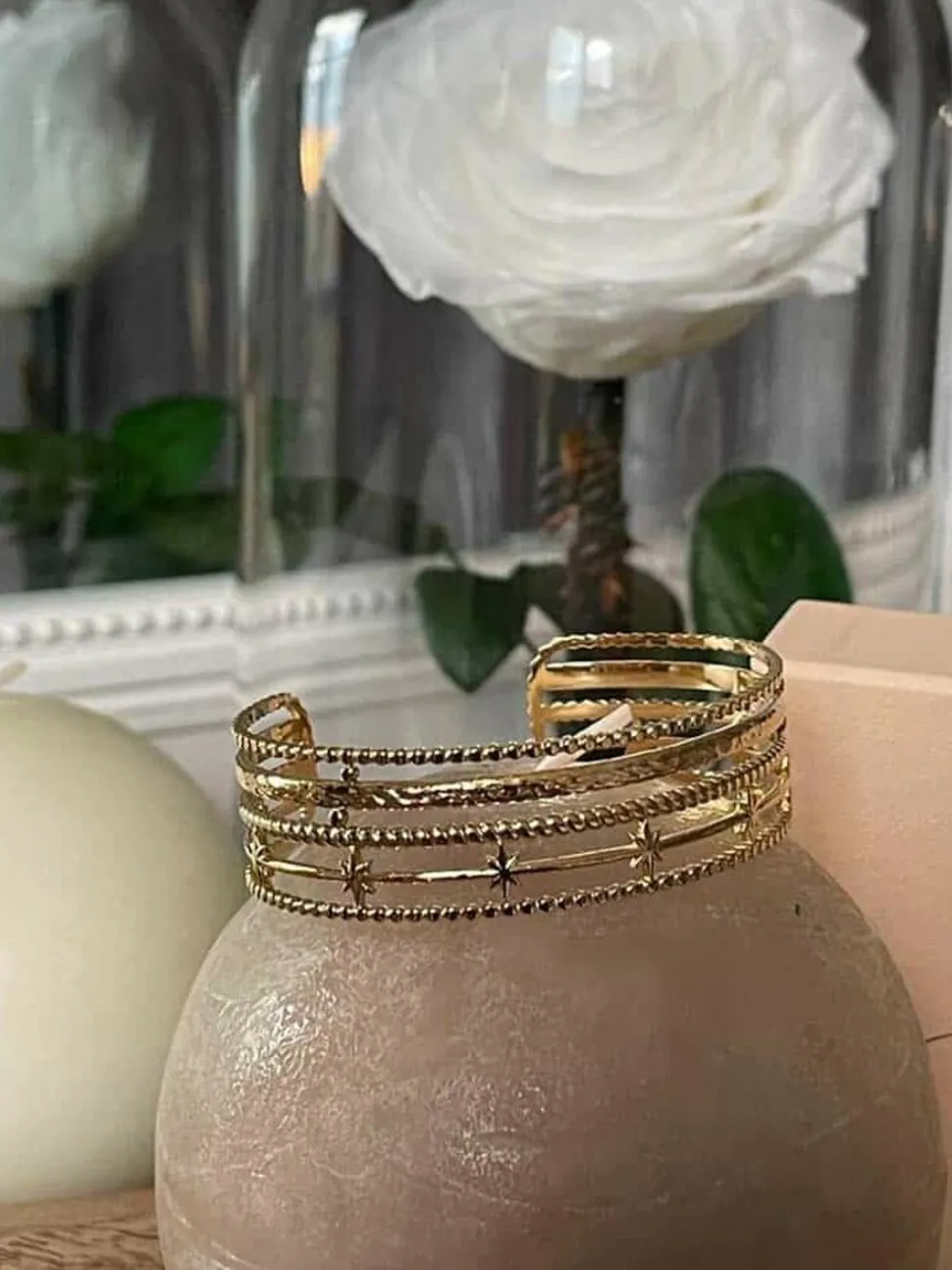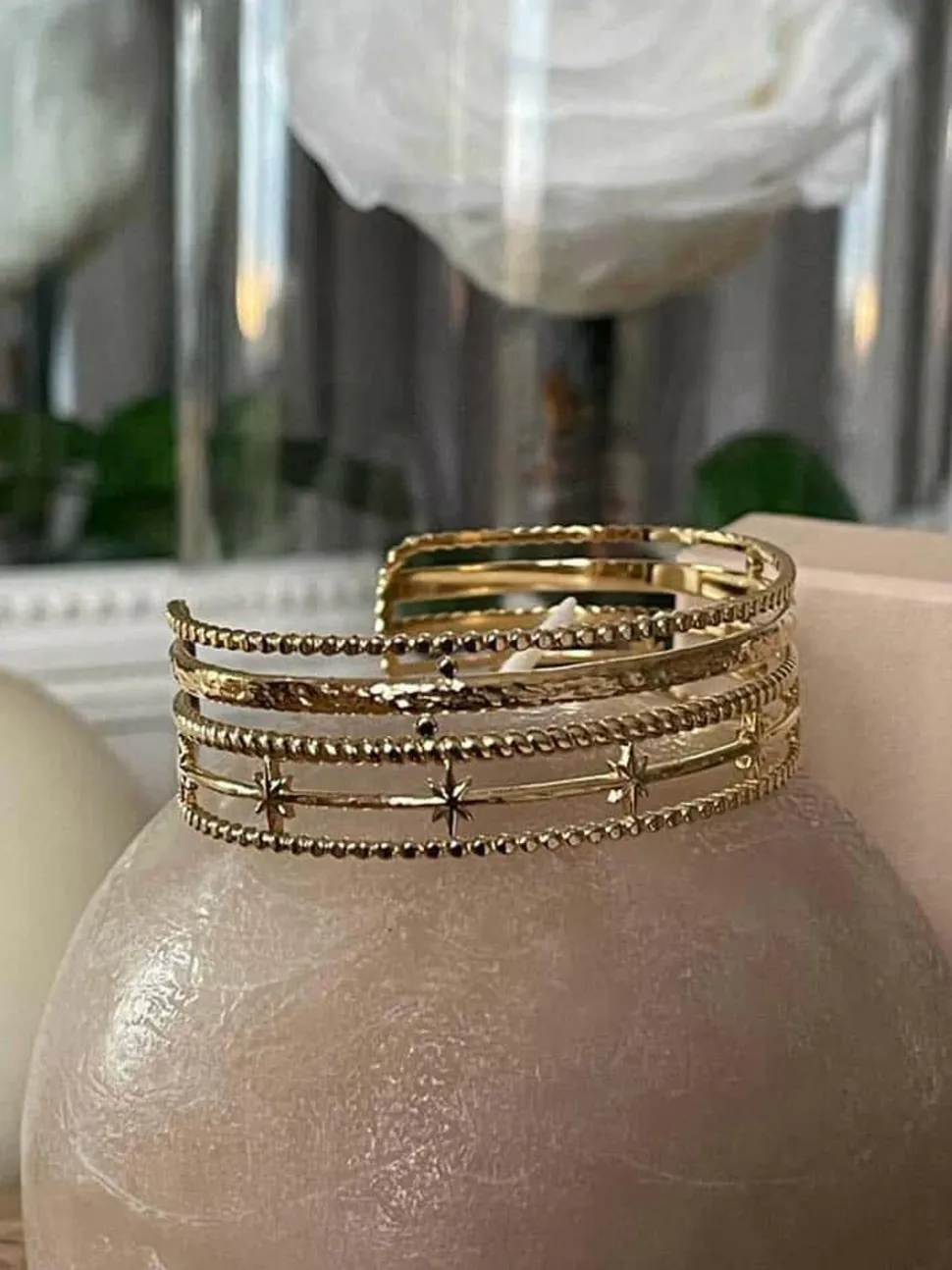Jonc Multi Rangs Doré Katy Est En Acier Inoxydable Doré. Il Nous Séduit Par Ses Multiples Rangs Joliment Travaillés.