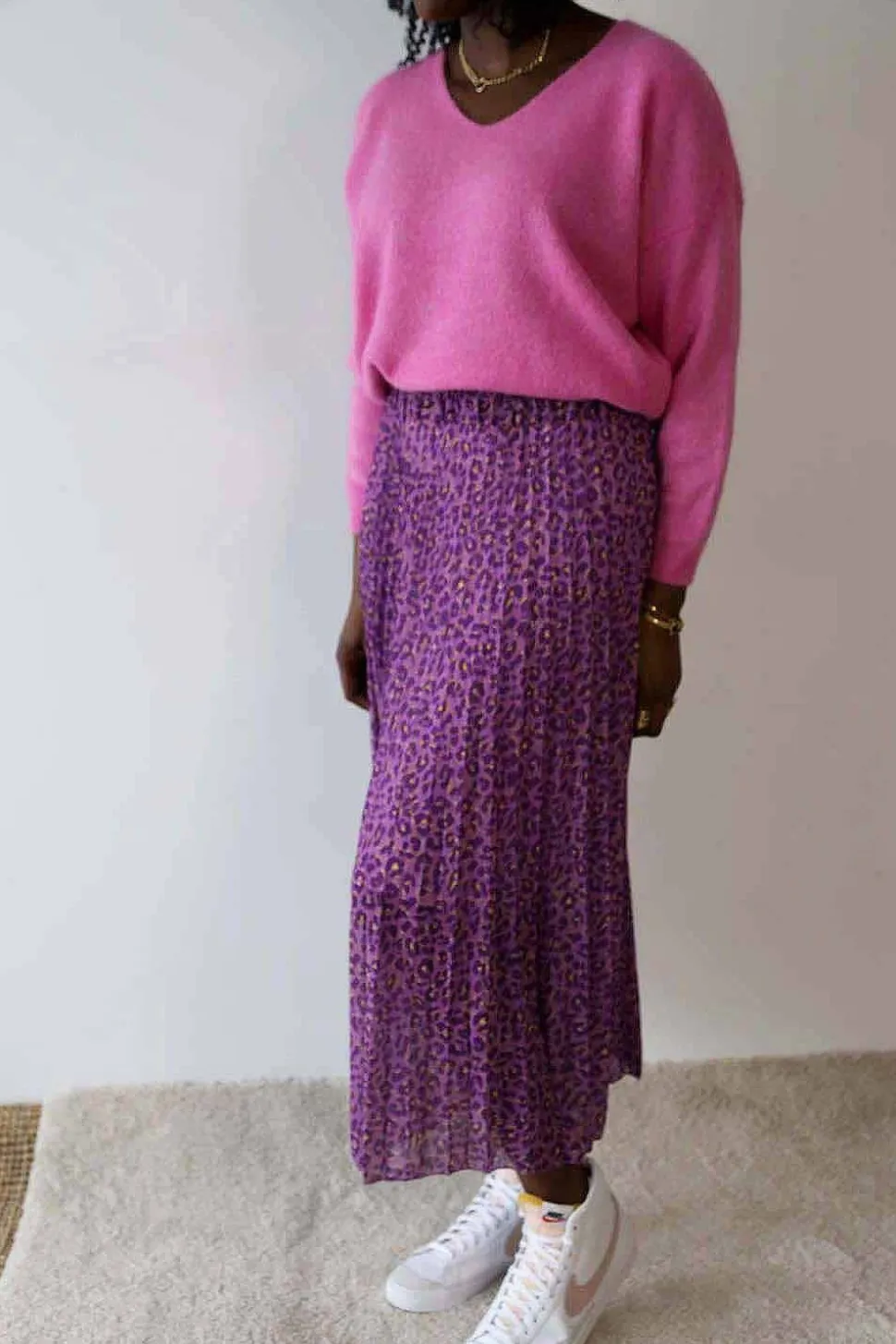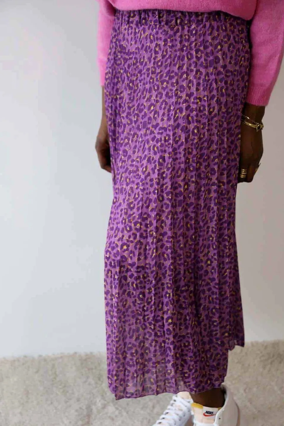 La Jupe Plissée Violet Nimalia Est Une Pépite Du Vestiaire Feminin. On Aime Son Imprimé Animal Et La Fluidité Agréable De Son Jupon. Nimalia Se Porte En Journée Avec Sa Paire De Chaussures Préférée. Portée Avec Un Pull Rentré À La Taille Ou Simplement Avec Un T-Shirt : On Adore.