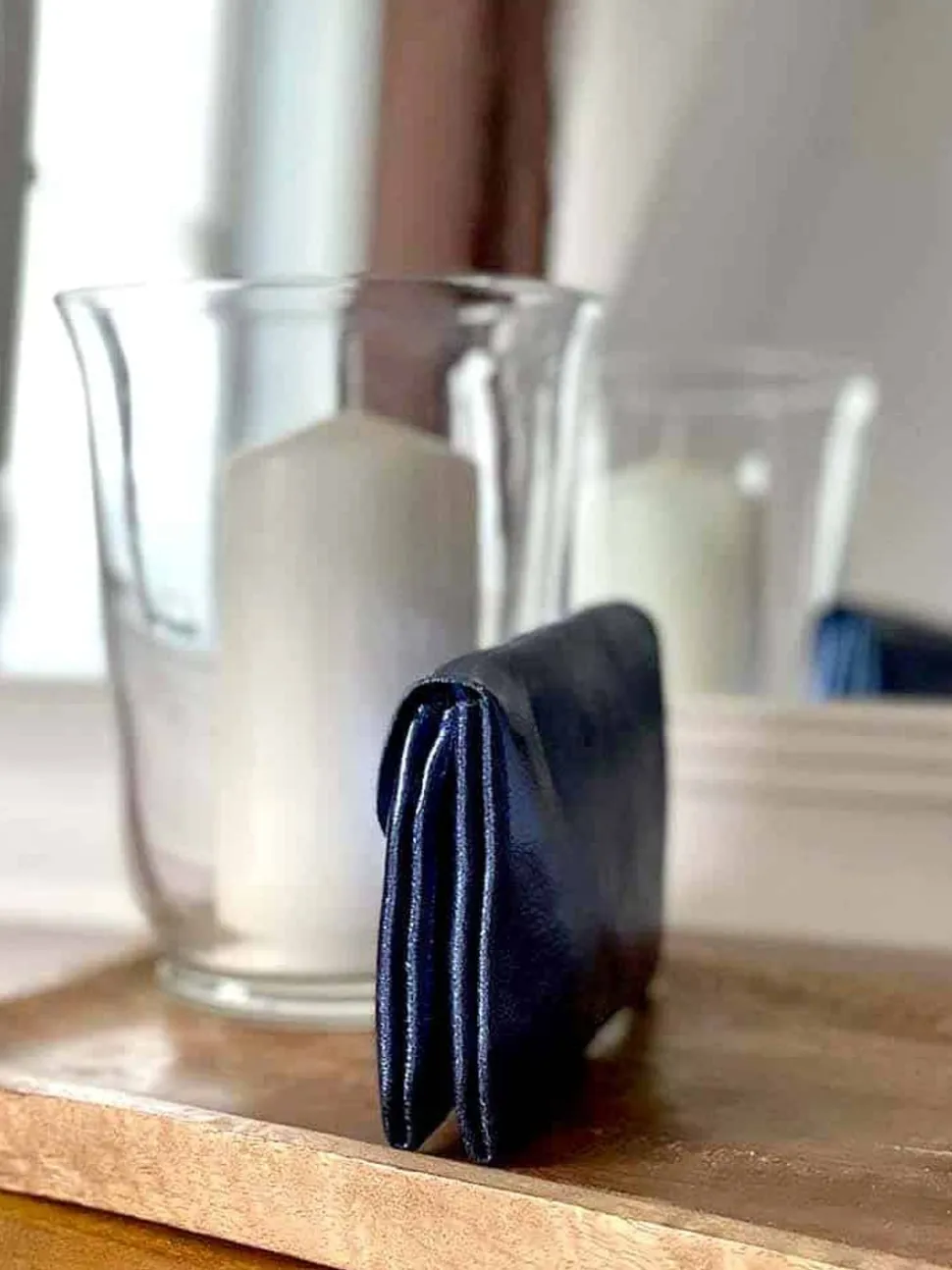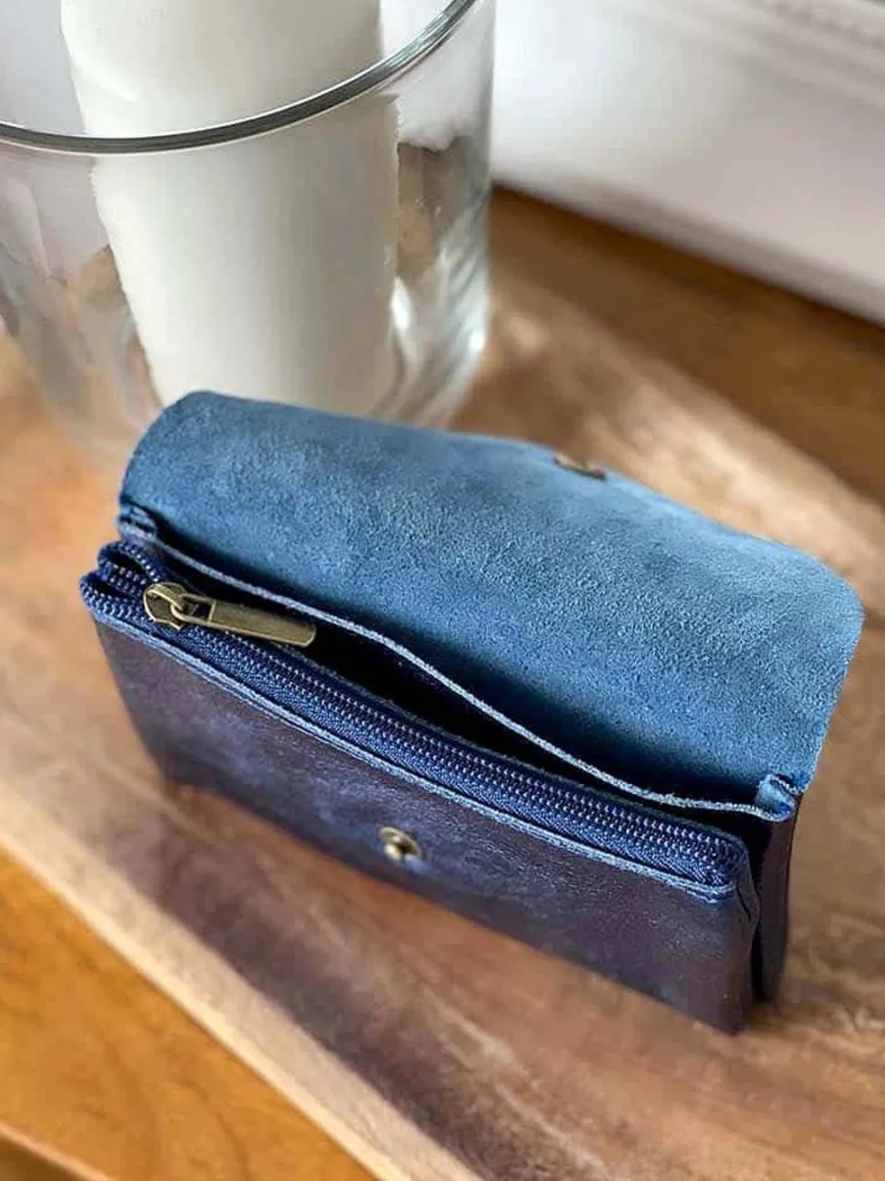 Le Porte-Cartes En Cuir Bleu Efyra Nous Séduit Pas Son Cuir Métallisé. D’Un Pratique Sans Limite, Il S’Ouvre Sur 3 Compartiments. La Partie Zipée Vous Permet D’Y Conserver En Sécurité Tous Vos Effet Les Plus Précieux. Les Deux Autres Compartiments Acceuillent Facilement Vos Billets, Cartes Et Autres Effets Personnels. Il Se Referme À L’Aide D’Un Rabat Maintenu Par Une Pression. C’Est Une Jolie Pièce Ultra Pratique Et Vraiment Très Jolie. Efyra Deviendra Vite Le Chouchou De Votre Sac À Main Et Vous Accompagnera Absolument Partout.