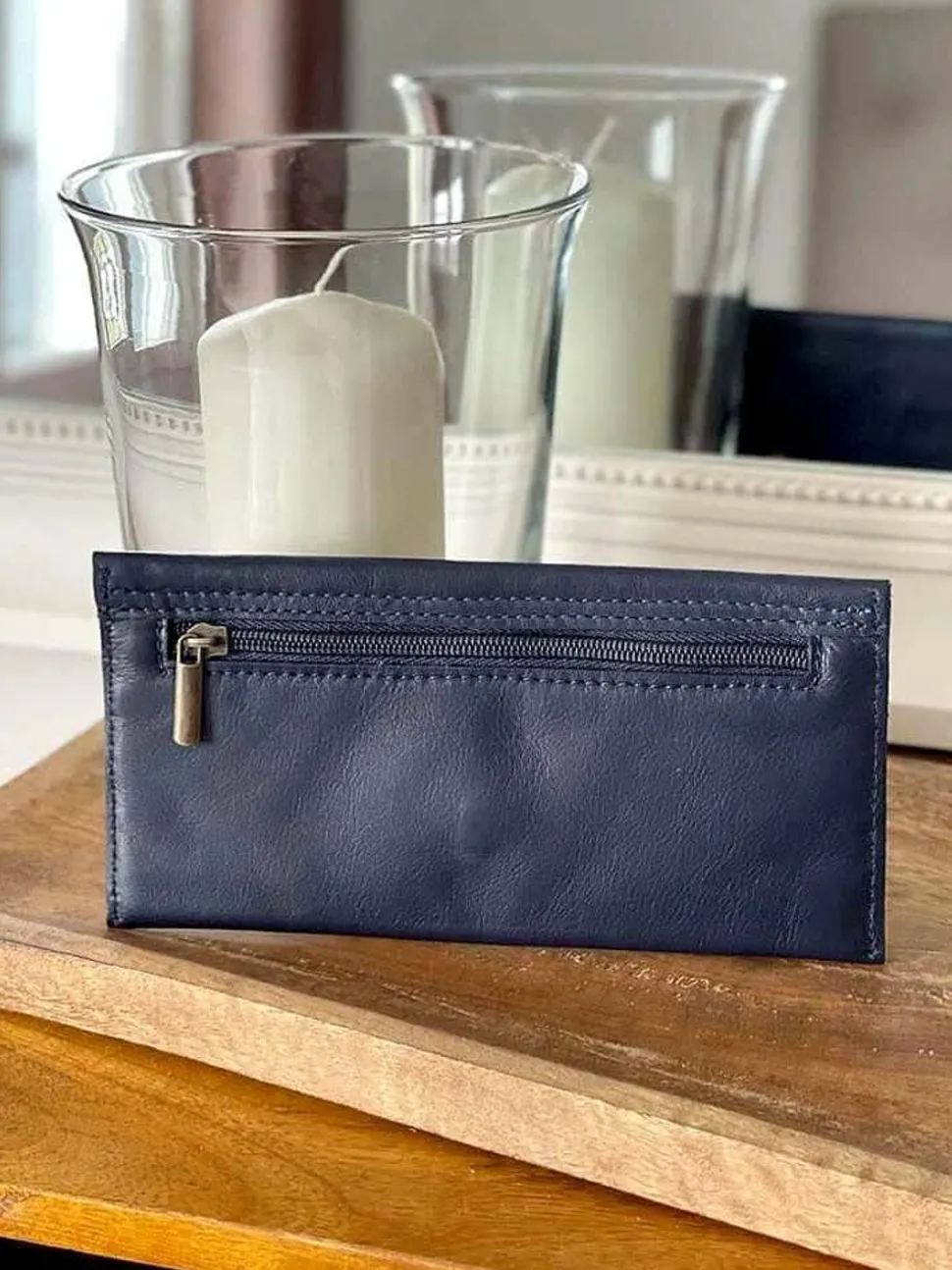 Découvrez L’Élégance Authentique Du Porte-Cartes En Cuir Lisse Bleu Marine Molly Fabriqué En Italie. Son Compartiment Principal, Sécurisé Par Une Fermeture À Pression, Offre Un Espace Sûr Pour Vos Objets De Valeur. Les Multiples Compartiments Spécialement Conçus Sont Parfaits Pour Accueillir Vos Cartes Et Autres Nécessités Personnelles. Une Poche Plaquée À L’Arrière Ajoute Une Touche De Praticité, Permettant Un Accès Facile À Vos Articles Fréquemment Utilisés.