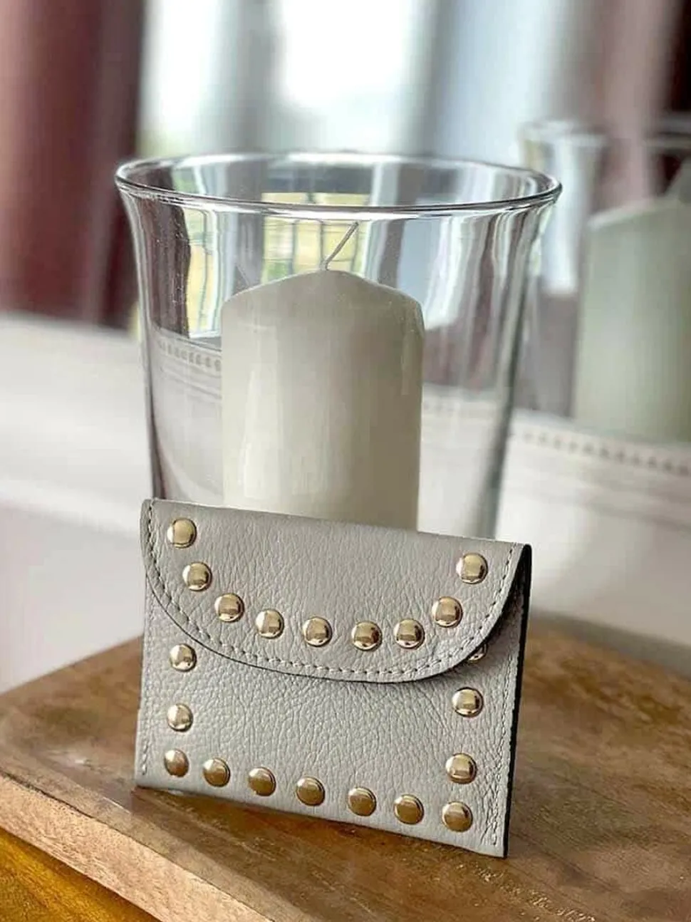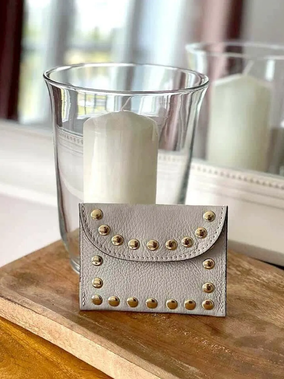 Explorez L’Élégance Authentique Du Porte-Cartes En Cuir Grainé Gris Taupe Storm, Arborant Un Design Rock Avec Des Clous Sur Tout Le Tour. Conçu Avec Soin Pour Allier Style Et Fonctionnalité, Cet Accessoire Incarne L’Audace Et La Praticité. Son Cuir De Qualité Supérieure Offre Une Texture Raffinée Qui Attire L’Attention, Tandis Que Les Clous Ajoutent Une Touche De Caractère Et D’Originalité.