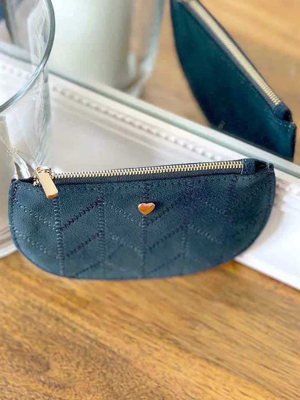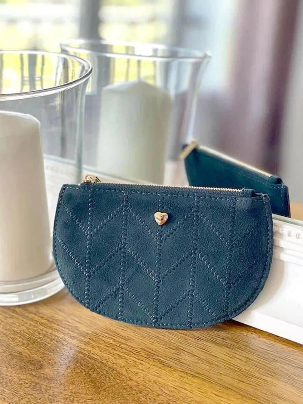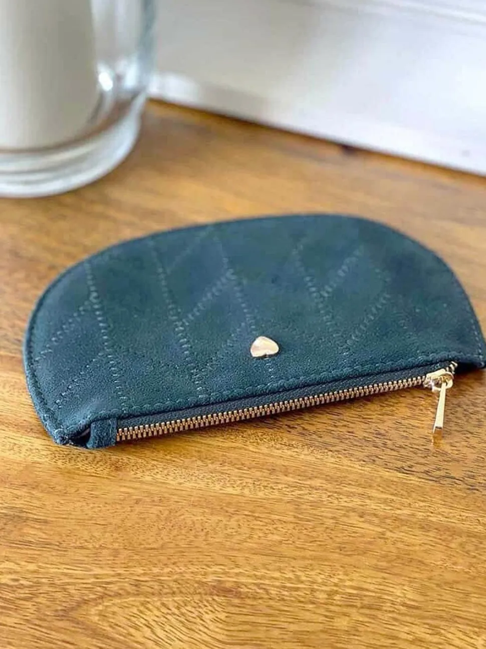 Sa Finition En Croûte De Cuir Et Sa Jolie Découpe Arrondie En Font Une Pièce Ultra Séduisante. On Craque Pour Le Charmant Petit Coeur Doré Délicatement Posé Sur Le Dessus De Ce Joli Petit Porte-Monnaie Chic Et Minimaliste.