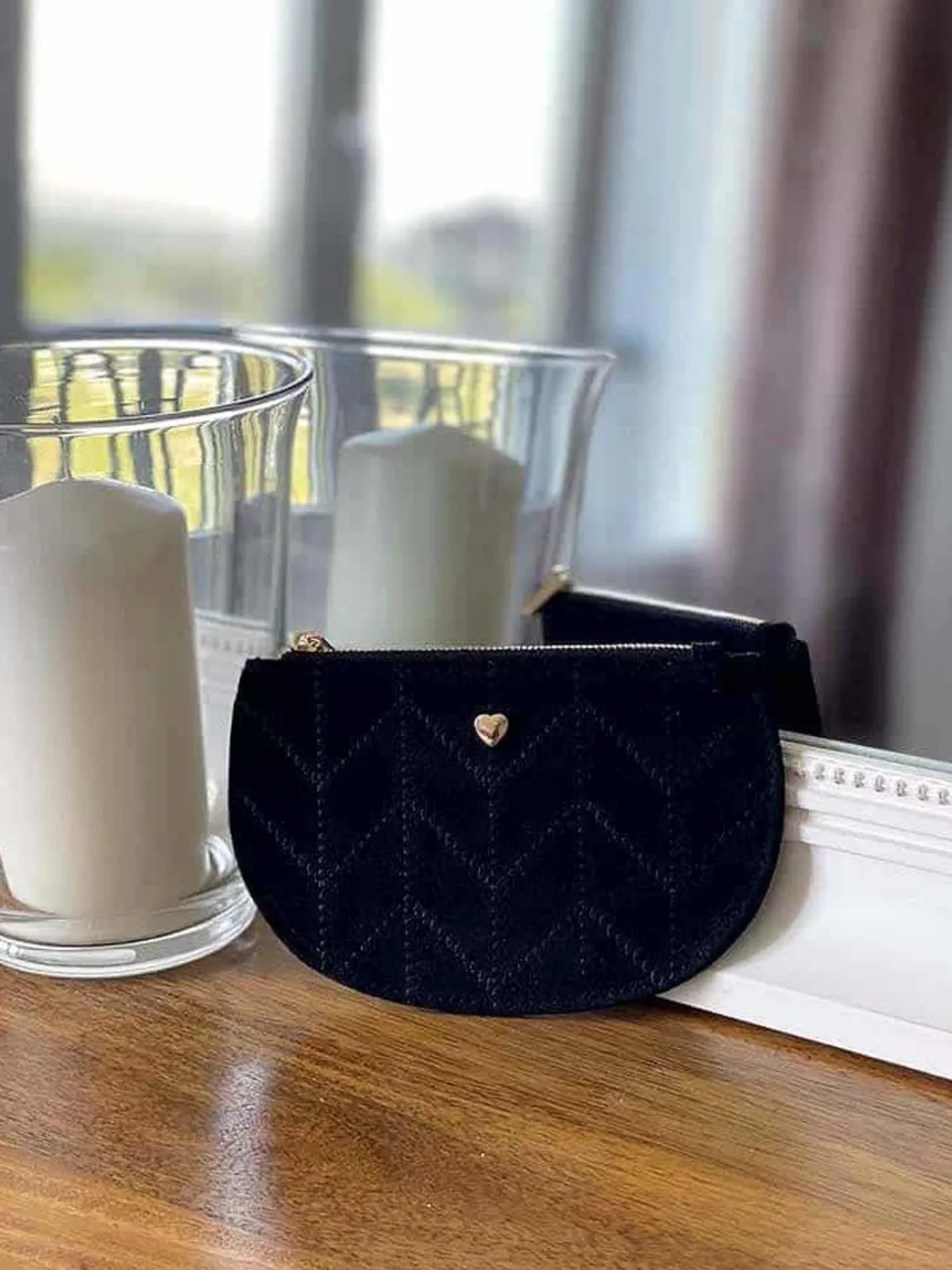 Sa Finition En Croûte De Cuir Et Sa Jolie Découpe Arrondie En Font Une Pièce Ultra Séduisante. On Craque Pour Le Charmant Petit Coeur Doré Délicatement Posé Sur Le Dessus De Ce Joli Petit Porte-Monnaie Chic Et Minimaliste.