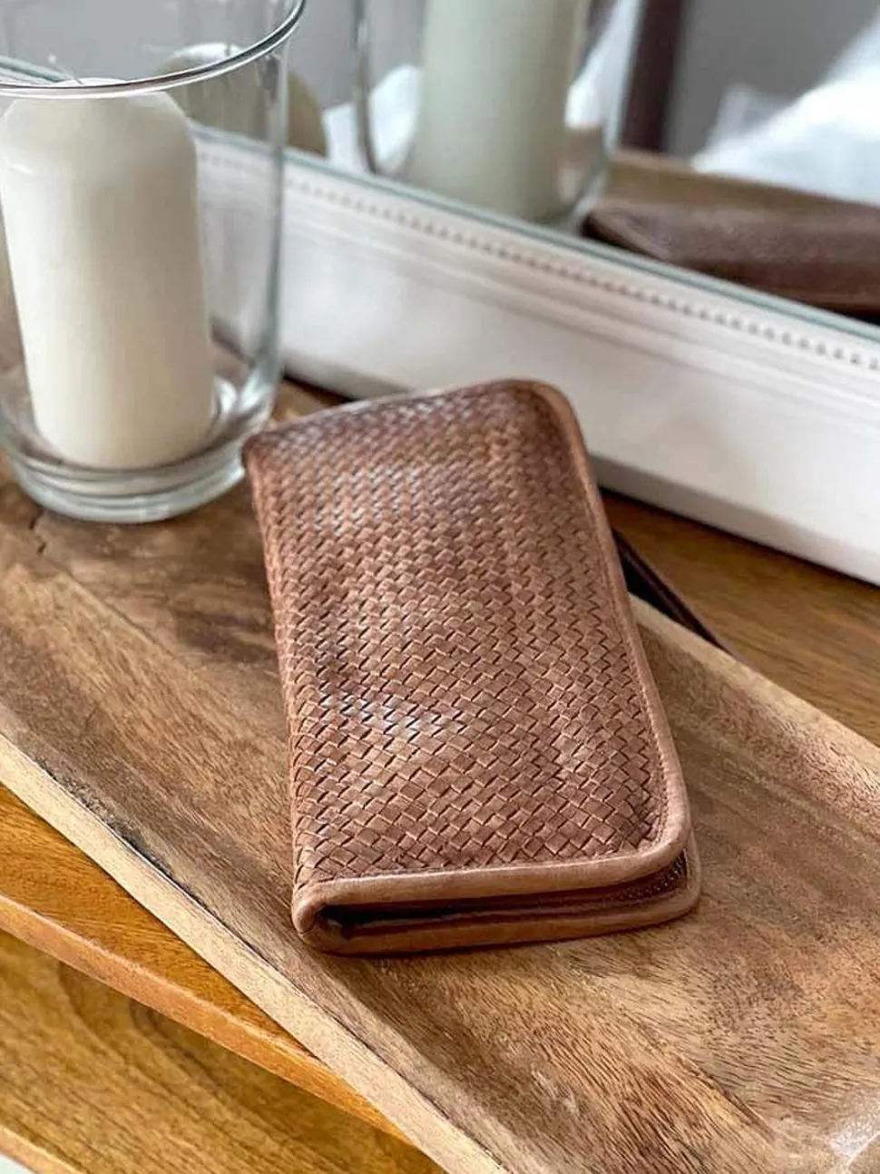 Élevez Votre Style Et Votre Organisation Avec Le Compagnon En Cuir Tressé Marron Taupe Hector. Fabriqué En Italie, Il Incarne L’Élégance Italienne Tout En Offrant Une Solution Pratique Pour Ranger Vos Essentiels. Son Design Unique, Son Cuir Tressé Et Ses Détails Soignés En Font Un Accessoire De Choix. Découvrez La Qualité Et Le Style Inégalés Du Compagnon Hector.