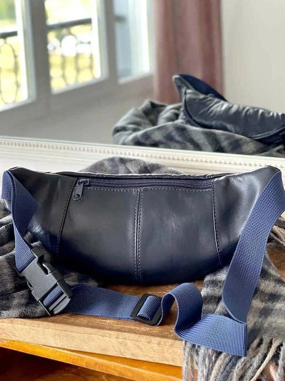 Grâce À Sa Bandoulière Fixe Et Ajustable, Le Sac Banane Homme En Cuir Bleu Marine Pour Homme Blake Vous Offre Un Style Polyvalent Et Décontracté. Portez-Le En Travers Du Corps, À L’Épaule Ou À La Taille Pour Une Allure Tendance.