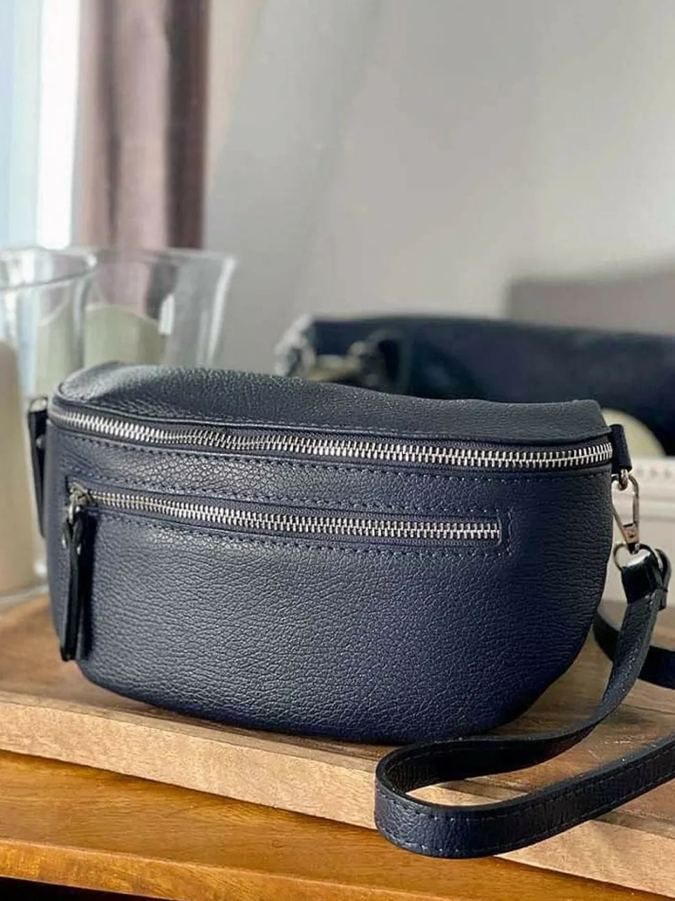 Grâce À Sa Bandoulière Amovible Et Ajustable, Le Sac Banane En Cuir Bleu Marine Chelby Se Porte En Croisé, À L’Épaule Ou À La Taille Pour Une Allure Tendance Et Décontractée. Il Est Aussi Possible De Remplacer Sa Bandoulière Par L’Une De Nos Bandoulières Pour Obtenir Un Modèle Unique Composé Selon Vos Envies.