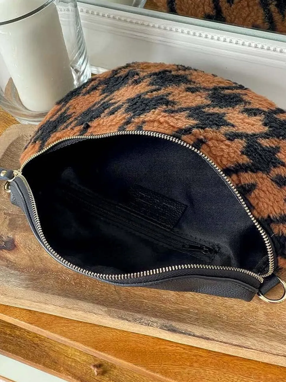 Élégance Et Praticité Se Rencontrent Dans Notre Sac Banane En Moumoute Et Cuir Marron Camel Debbie Joliement Agrémenté D’Un Motif Pied De Poule. Ce Sac, Unique En Son Genre, Dispose D’Une Poche Zippée À L’Intérieur Pour Sécuriser Vos Petits Objets. Sa Bandoulière Amovible Et Ajustable Vous Offre Diverses Options De Porté Pour Un Style Sans Limite. C’Est L’Accessoire Idéal Pour Ajouter Une Touche De Style Et De Fonctionnalité À Votre Quotidien !