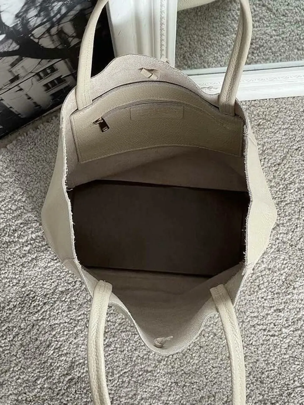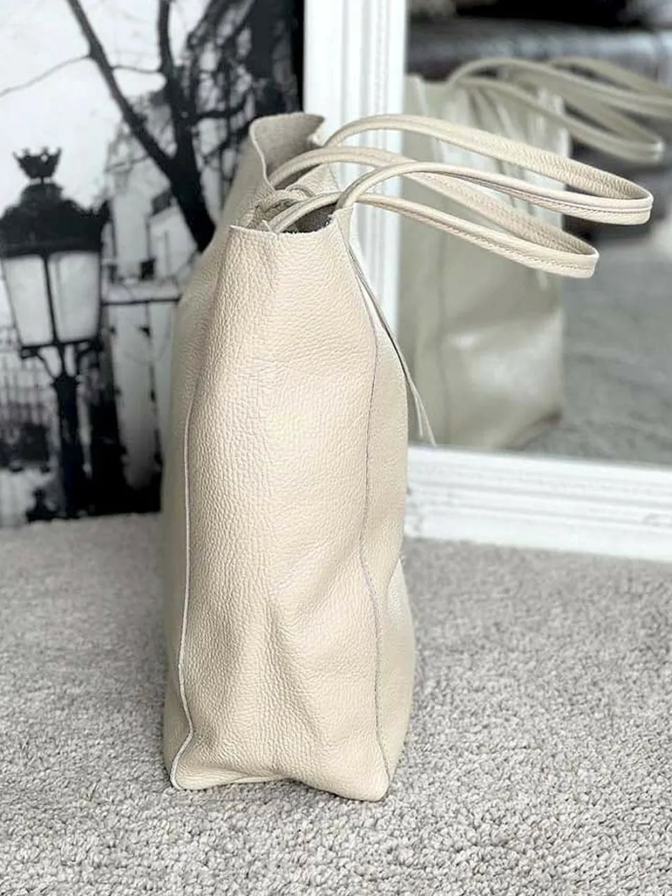Notre Cabas En Cuir Grainé Beige Écru Agata Est Conçu Pour Répondre À Toutes Vos Exigences Lors De Journées Bien Remplies. Doté D’Une Grande Capacité, Il Est Parfaitement Adapté Au Rangement De Vos Documents De Format A4, A4+, Trieur, Ordinateur Portable, Tablette, Cahier, Livre, Trousse Et Portefeuille…