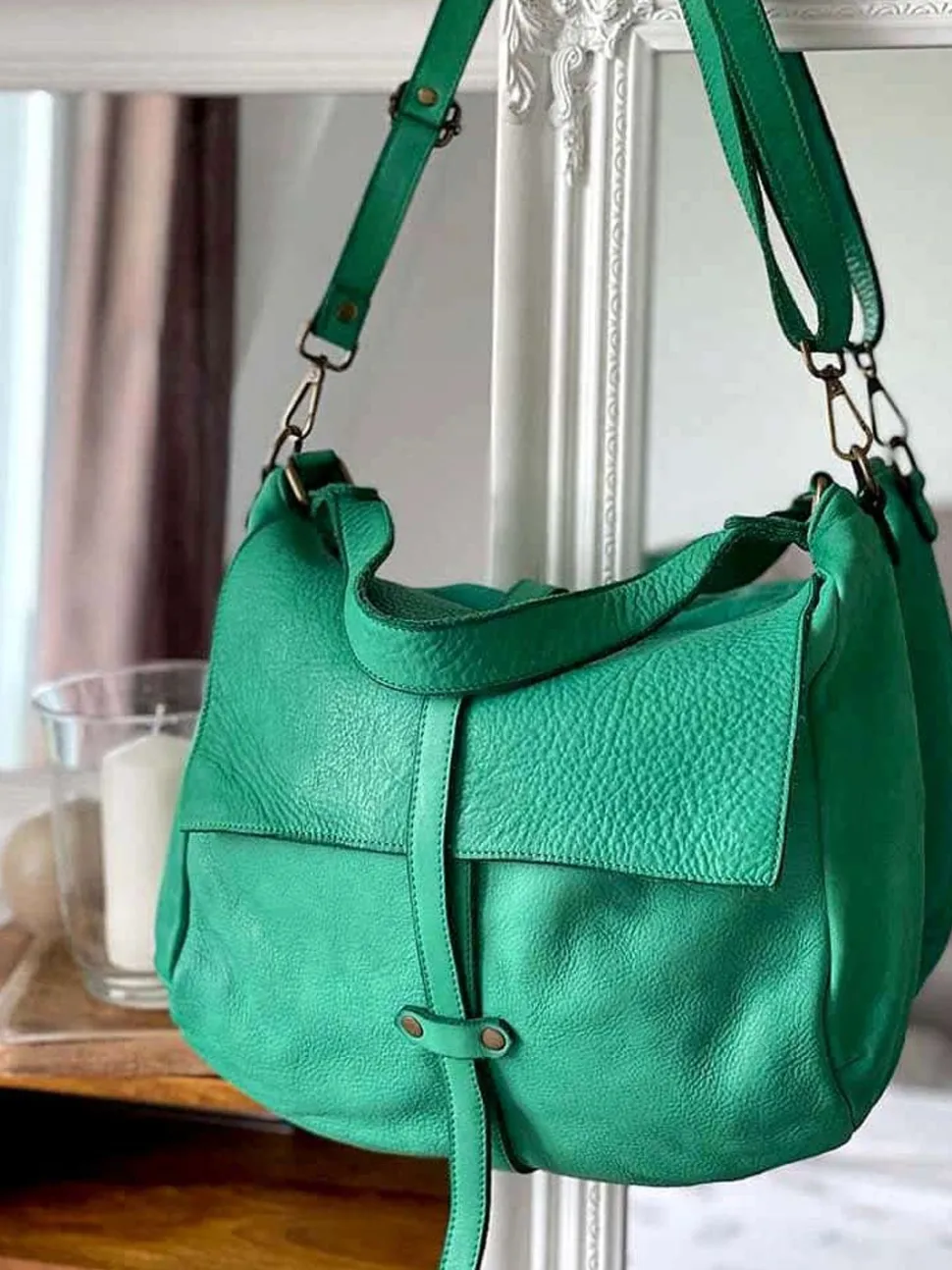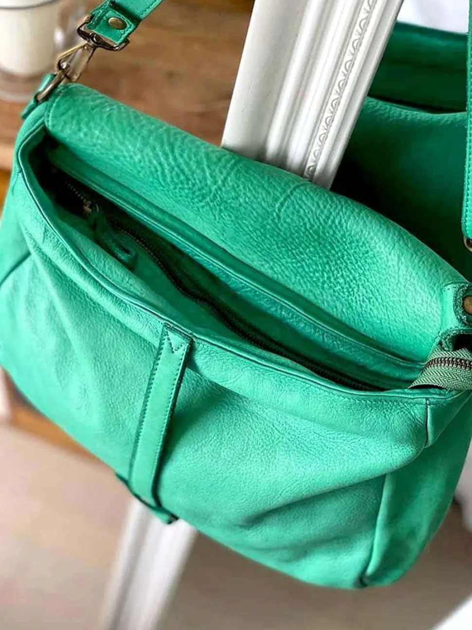 Le Sac Besace Cuir Vert Pomme Ninon Est Un Sac À Main En Cuir Vieilli Au Tannage Végétal. Une Véritable Pépite Née De La Passion Et Du Savoir-Faire De Nos Maroquiniers Italiens. Au Fil Du Temps, Son Cuir Se Patinera, Faisant Ainsi De Lui Une Pièce Unique, De Celles Que L’On Garde Toute Une Vie… Et Que L’On Transmet.