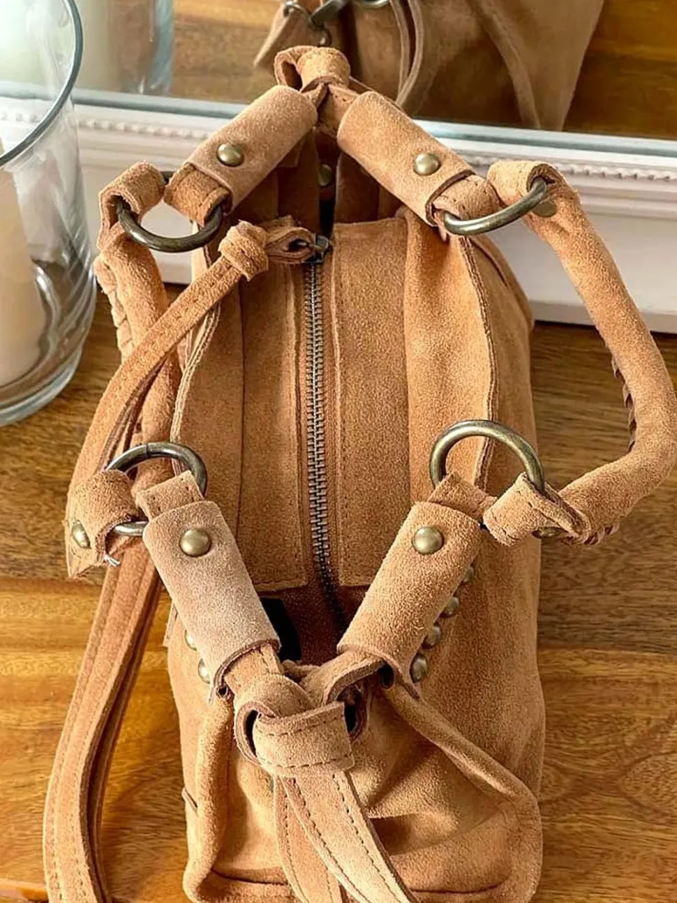 - Détails Raffinés : Les Clous En Laiton Vieilli Et Les Tirettes De Zip En Cuir Nubuck Ajoutent Une Touche De Caractère Au Sac