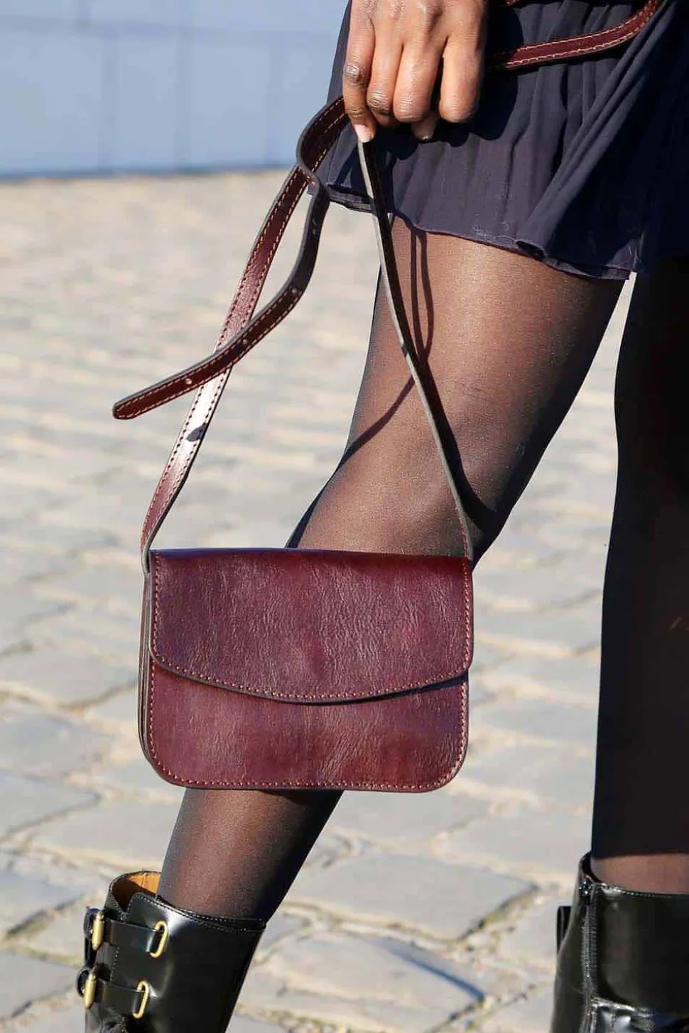 - Bandoulière Cuir Fixe Et Ajustable : 60 Cm À 130 Cm Max.