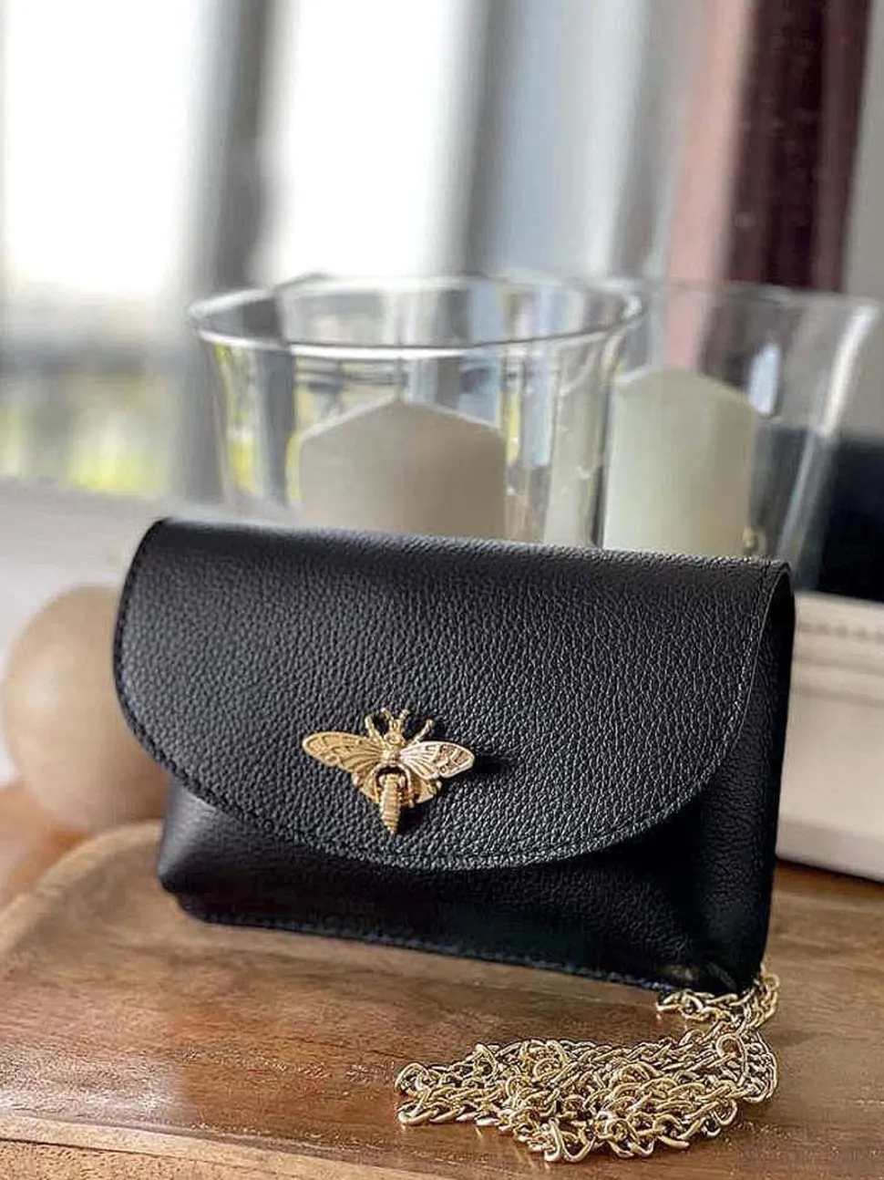 Le Mini Sac En Cuir Noir Ilona Nous Séduit Par Son Charme Irrésistible. On Aime Son Cuir Grainé Qui Contraste Avec Un Chic Fou Au Fermoir Bijou Doré De Cette Jolie Pièce Définitivement Glamour Et Pile Dans La Tendance.