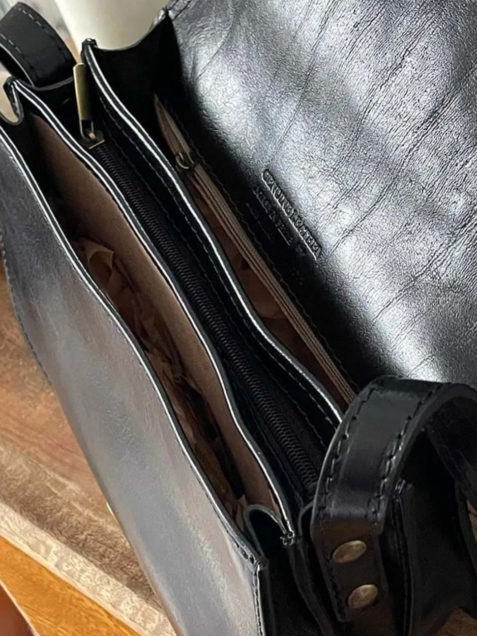 - Bandoulière Cuir Fixe Et Ajustable : 60Cm À 130Cm Max.