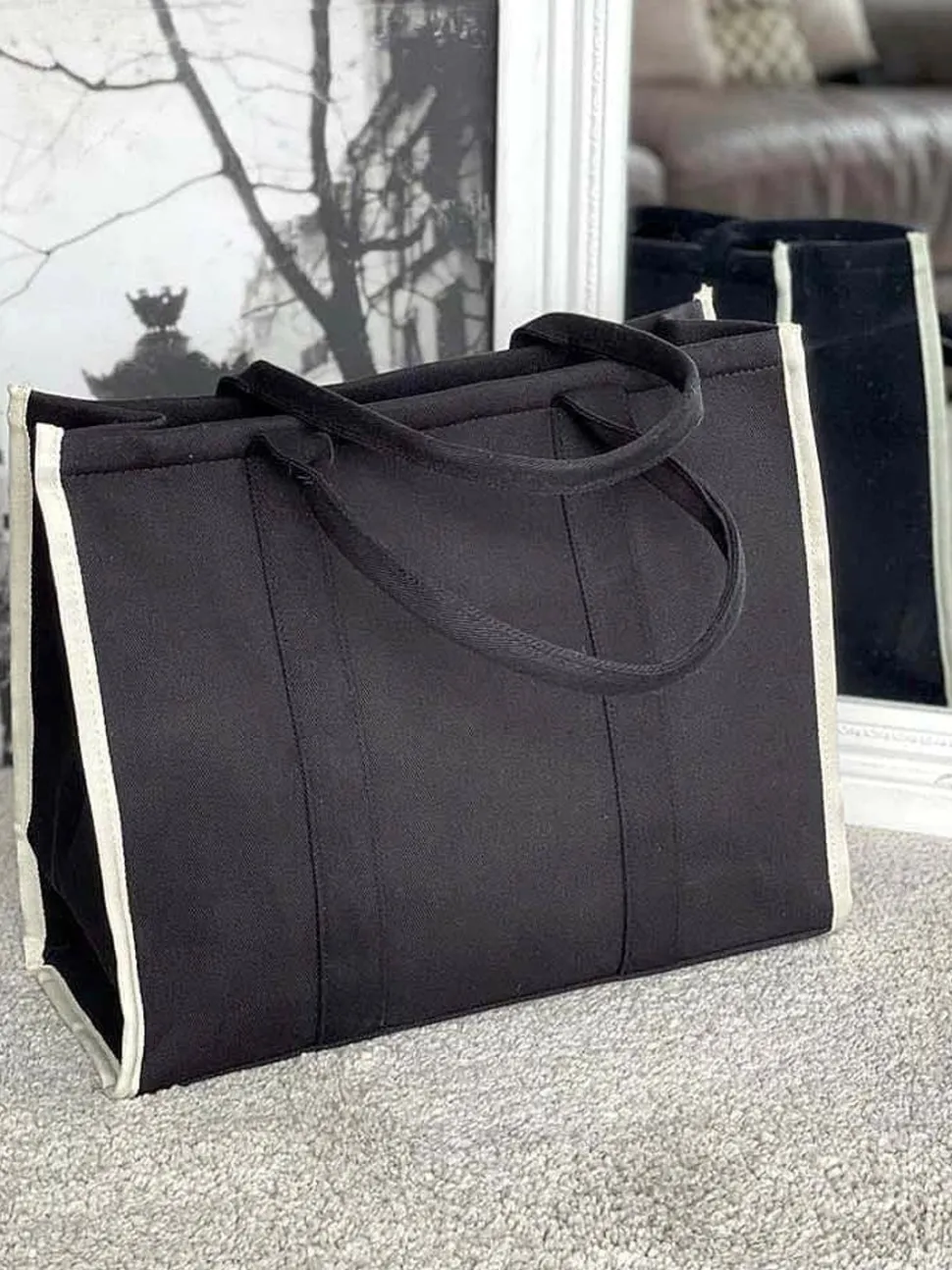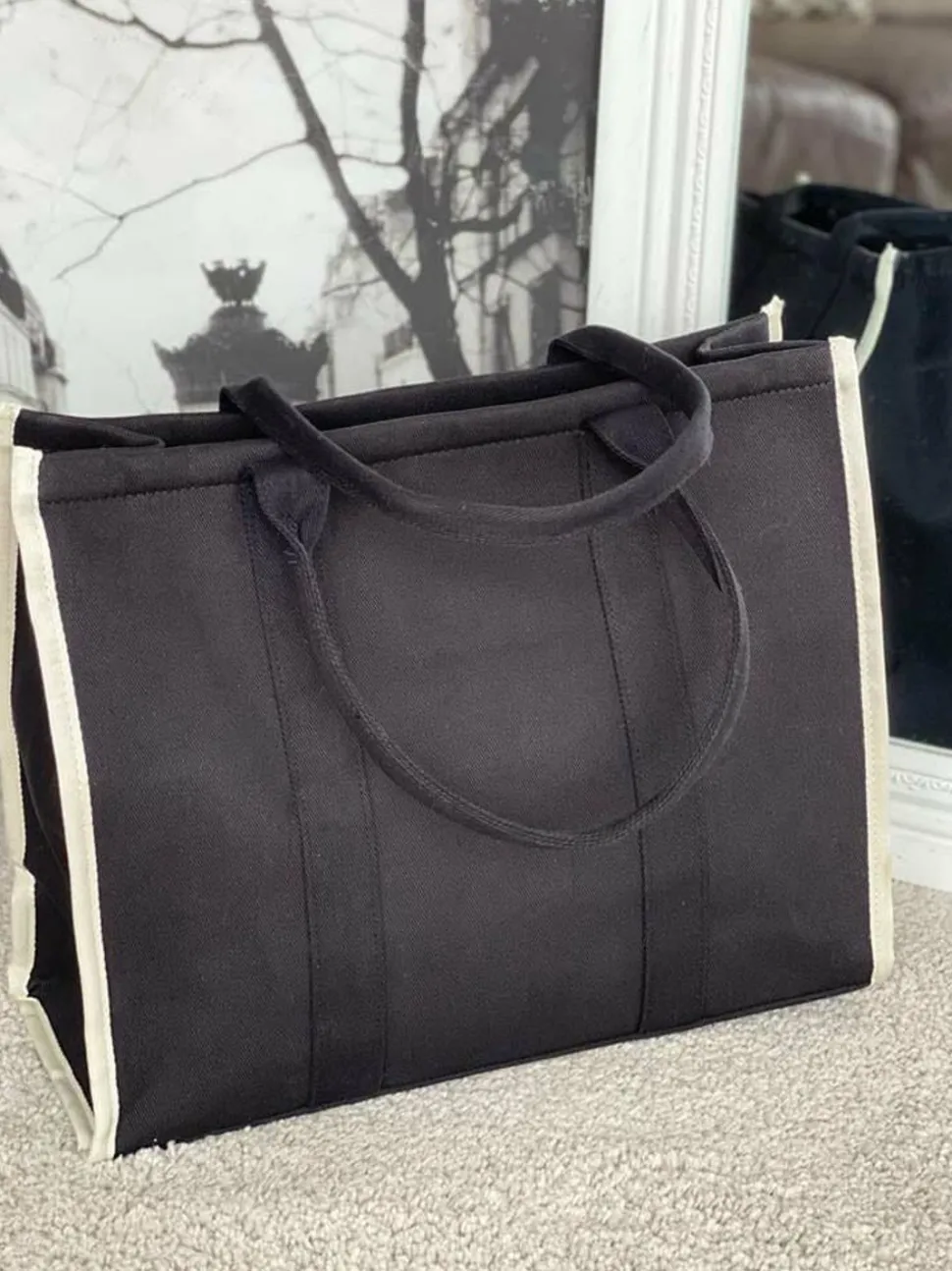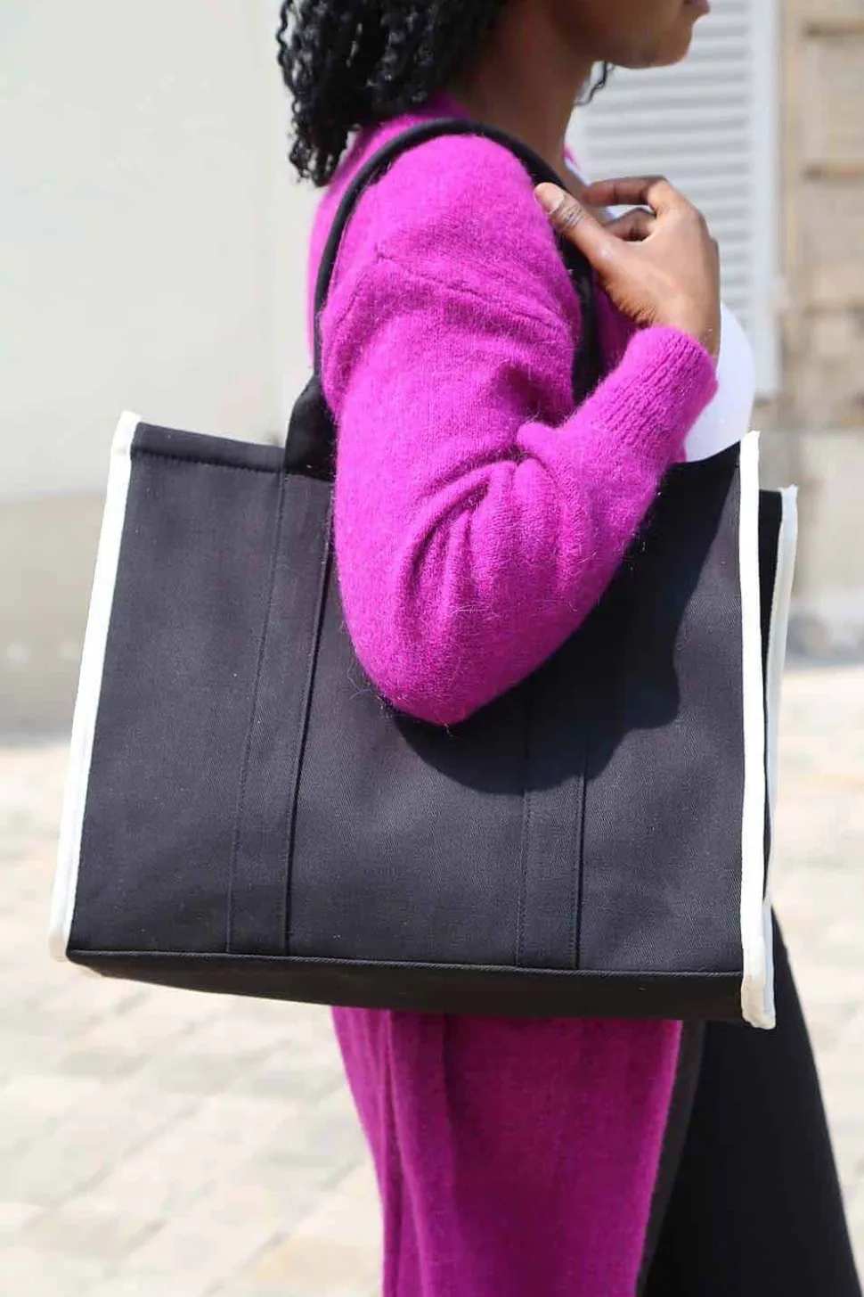 Présentant Une Grande Capacité, Notre Cabas Noir En Coton Miranda Est L’Accessoire Idéal Pour Vos Journées Chargées. Il Est Parfaitement Dimensionné Pour Y Ranger Vos Documents De Format A4, A4+, Trieur, Ordinateur Portable, Tablette, Cahier, Livre, Trousse De Maquillage, Portefeuille…