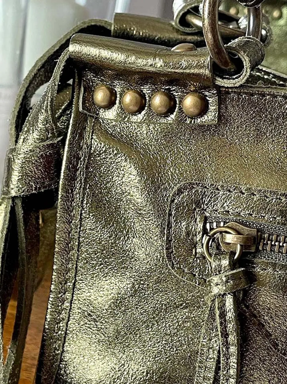 - Détails Raffinés : Les Clous En Laiton Vieilli Et Les Tirettes De Zip En Cuir Ajoutent Une Touche De Caractère Au Sac