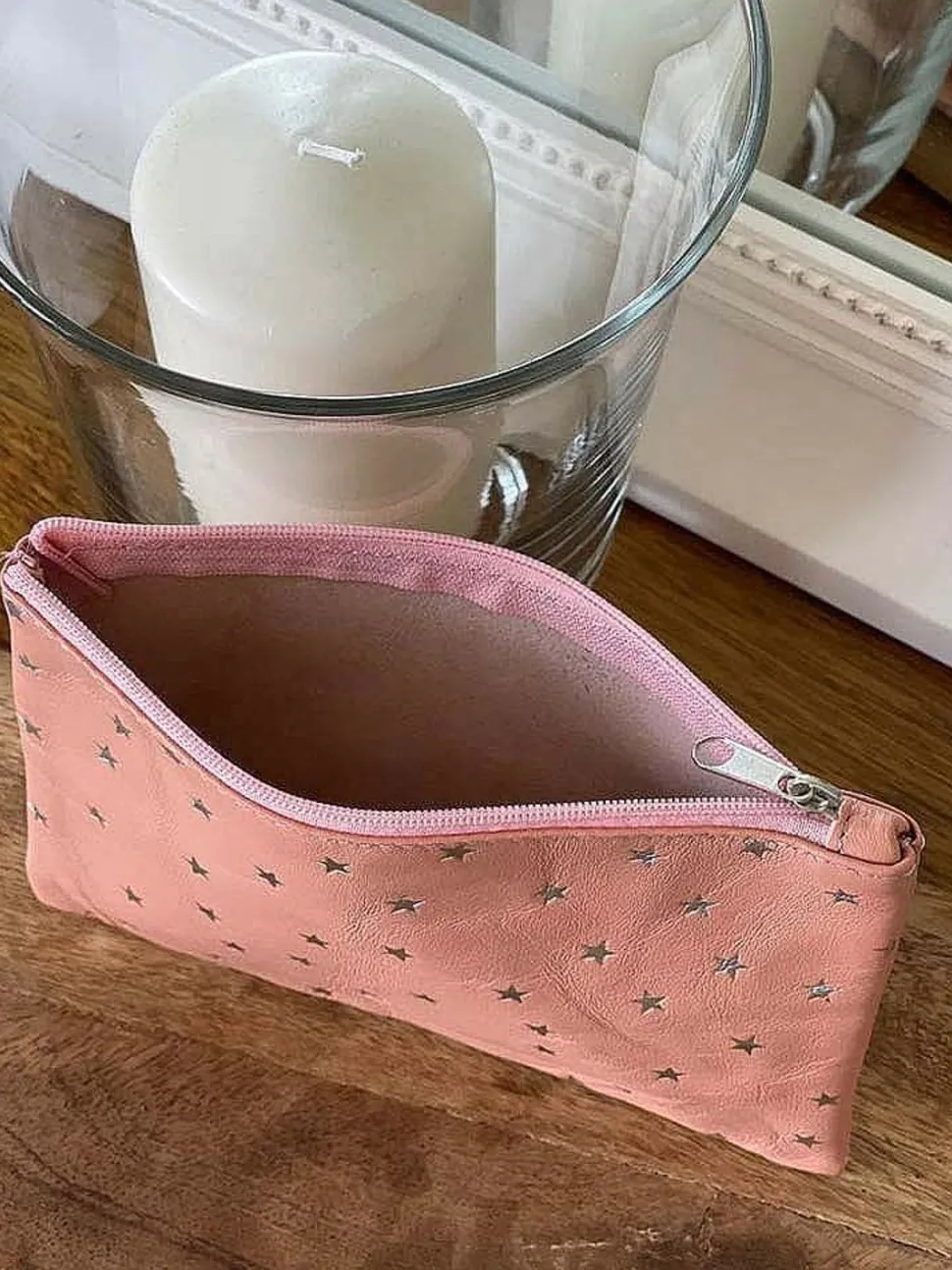 Le Cuir Orange Pêche De Première Qualité De Cette Trousse De Toilette Offre Une Esthétique Raffinée, Complétée Par De Petites Étoiles Argentées Qui Ajoutent Une Touche D’Originalité. Avec Ses Dimensions Compactes, Cette Trousse Est Idéale Pour Contenir Vos Essentiels De Toilette Tout En Prenant Peu De Place Dans Votre Sac. Parfaitement Adaptée À Votre Routine, Cette Trousse Deviendra Rapidement Un Indispensable De Votre Quotidien.